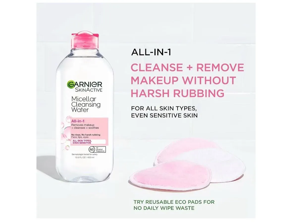 Garnier Micellar Cleansing Water, All-in-1 Removedor de maquillaje y limpiador facial, Agua Micellar