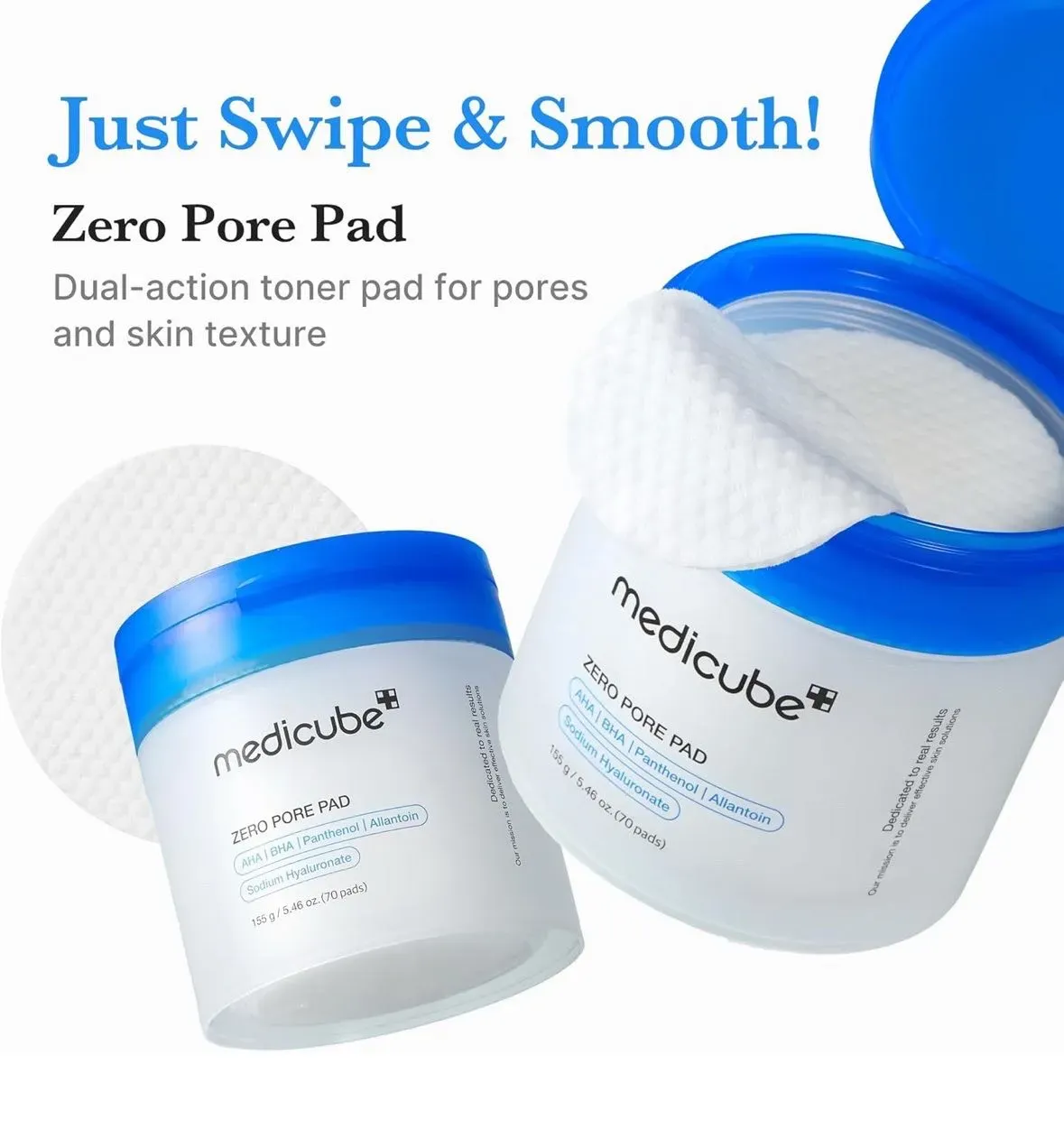 Medicube Zero Pore Pads 2.0, almohadillas de tóner facial de doble textura para exfoliación y cuidado de poros con 4.5% de ácido láctico AHA y 0.45% ácido salicílico BHA, ideal para todo tipo de piel